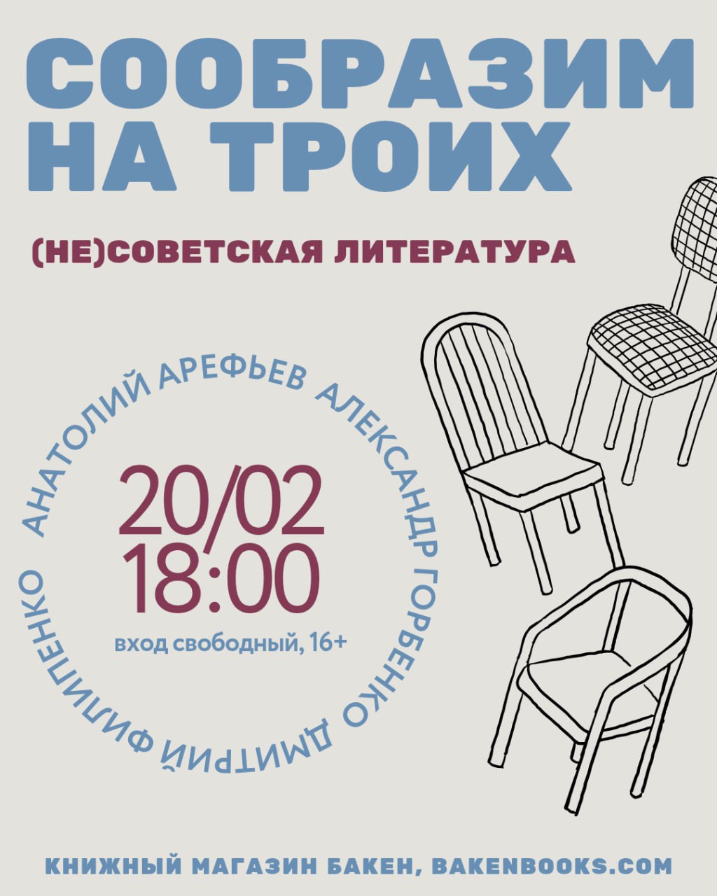 В феврале мы запускаем цикл паблик-токов «Сообразим на троих», публичных разговоров о литературе и её окрестностях.